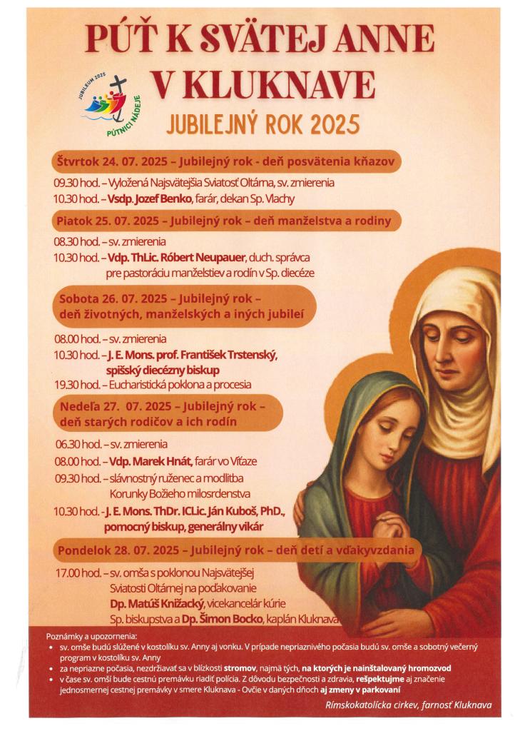 Prosíme pútnikov, aby nevystupovali na vlakovej zastávke Kluknava, ale na zastávke Richnava, ak cestujú do obce Kluknava.