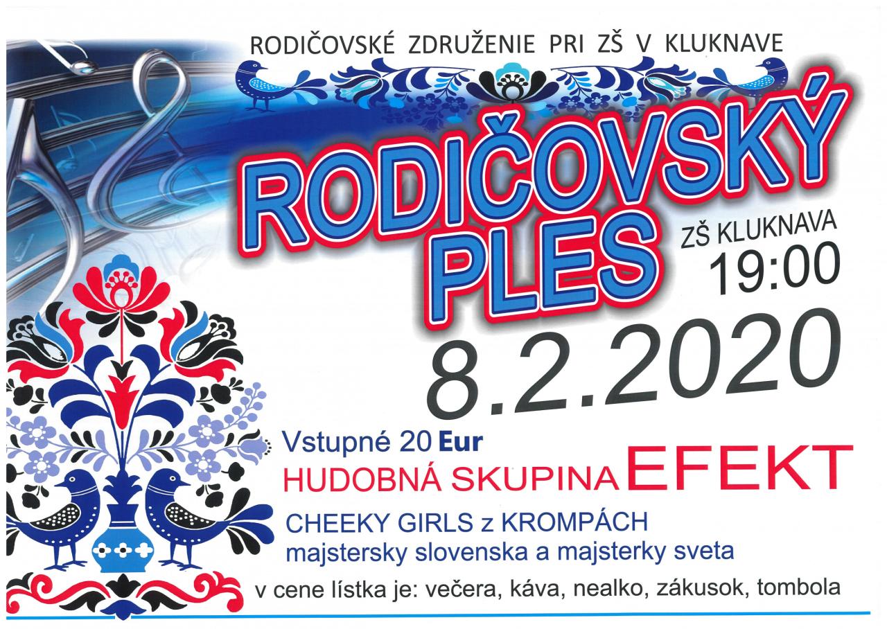 Rodičovské združenie pri ZŠ v Kluknave Vás pozýva na Rodičovský ples, ktorý sa uskutoční dňa 08.02.2020 o 19:00 hod. v ZŠ Kluknava. Cena lístka je 20 Eur. Hlavný hudobný hosť hudobná skupina EFEKT a Cheeky Girls z Krompách. Lístky je možné si zakúpiť u pani Daniely Majerníkovej, č.d. 106 alebo ZŠ Kluknava. Podrobnejšie info nájdete na plagáte.