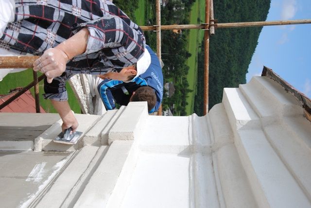 Oprava kostola - Práca murárov (FOTO: Mgr. Pavol Ondrík)